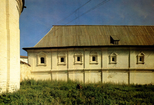 Как и певческий (см. Певческий корпус ), консисторский корпус владычного двора был построен в середине XVII века, повидимому, зодчим Ю. Яршовым. Здание имело служебный характер и предназначалось для нужд управления епархией. К консисторскому корпусу примыкают постройки бочарни, кузницы и сараев XVII века. Консисторский корпус завершает превращение архиепископского двора в кремле, начатое еще при епископе Ионе, в центр и резиденцию рязанских владык.