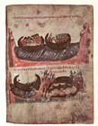 Сказание о Борисе и Глебе (отрывок). XI — XII вв.: 9 и 10 миниатюры из рукописного сборника. XIV в.